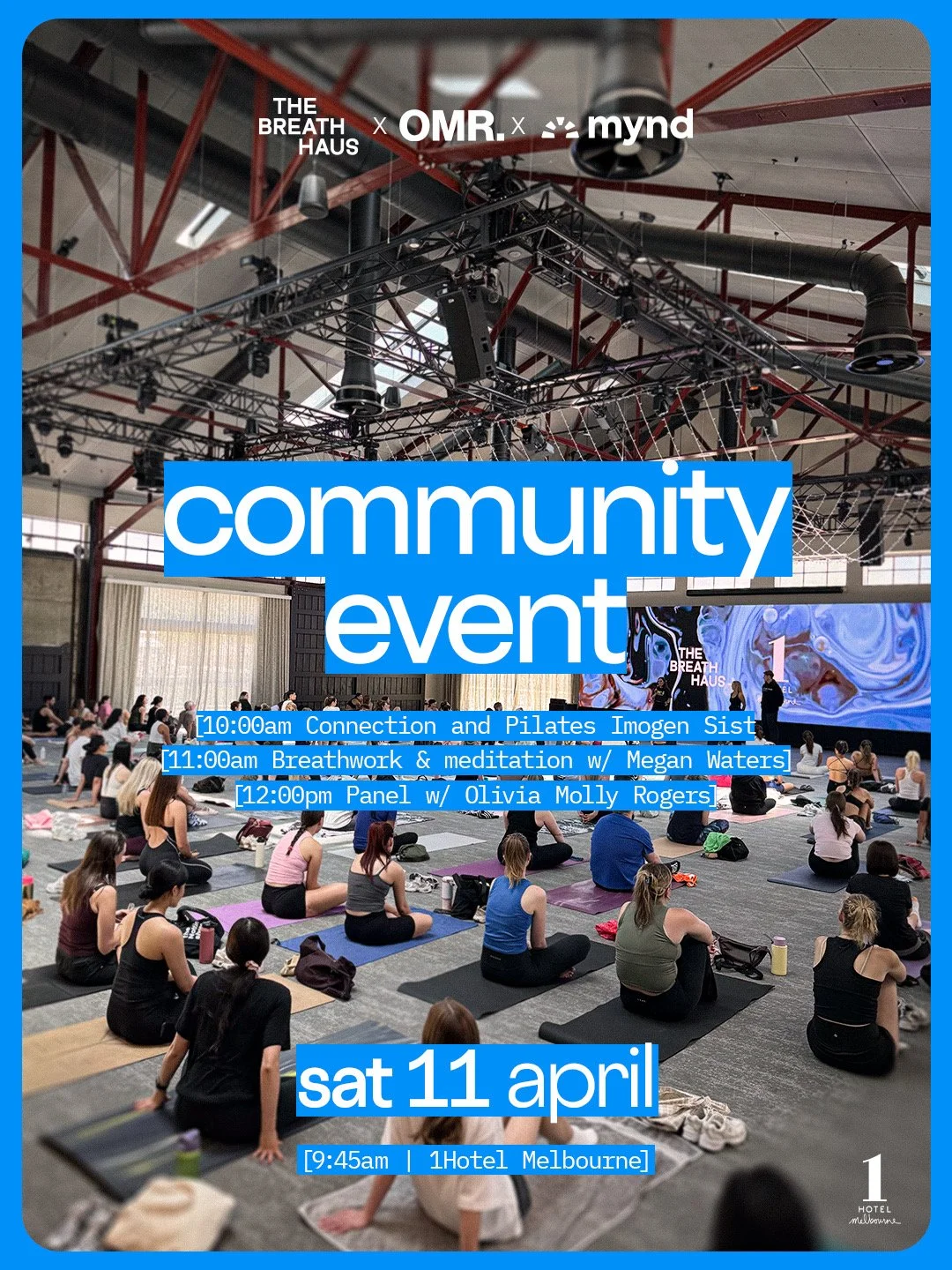 A community Mat Pilates session, guided breathwork, intimate guest talk from Olivia and a heap of community goodness.